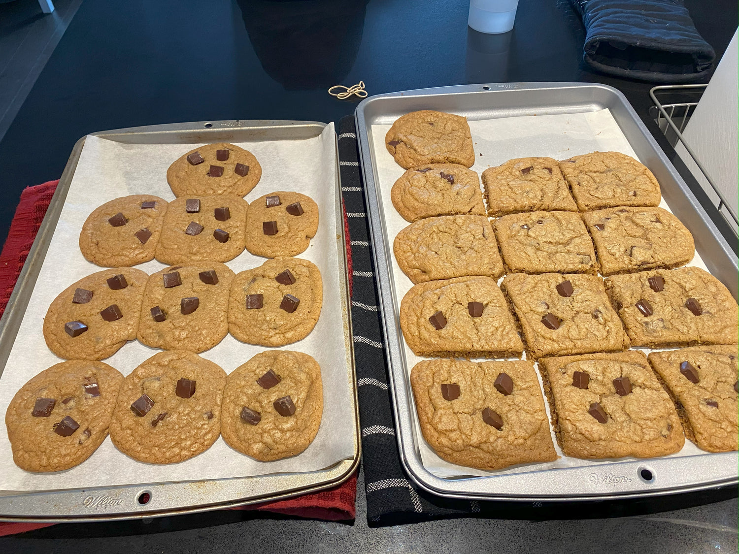 When the pandemic hit, like many others, I found myself searching for ways to stay busy. I decided I would try to create my "best" chocolate chip cookie recipe. For me, the perfect cookie has crispy edges with a soft, chewy middle. I began testing different recipes, making slight adjustments to the ingredients with each iteration. After many, many batches - documented in the pictures below - I arrived at the recipe I use today which I started selling near the end of 2023. Nevertheless, I'm always looking for ways to improve it when testing new flavours.